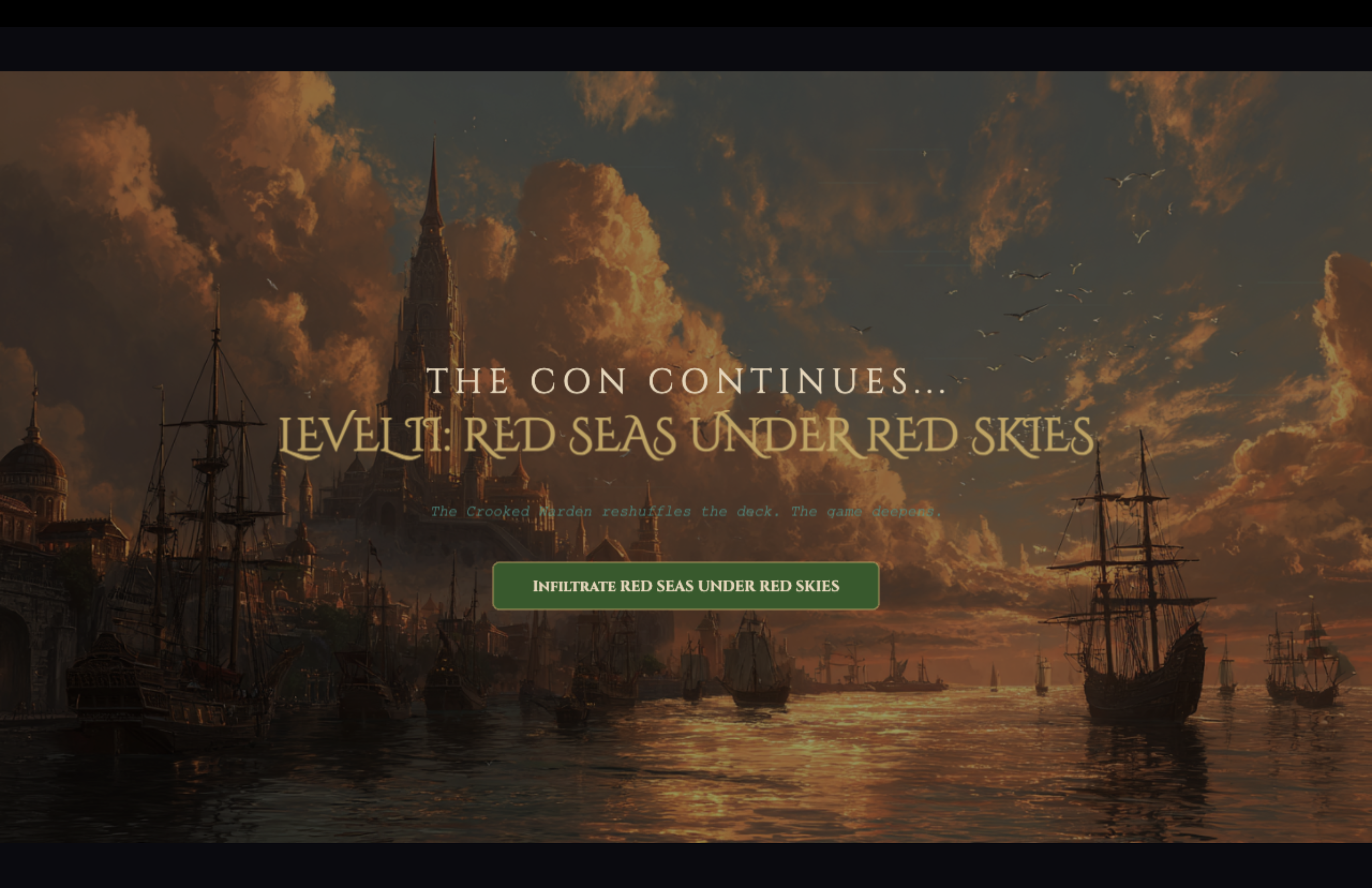 - The Crooked Warden — an AI narrator who comments on your every choice with mysterious humor