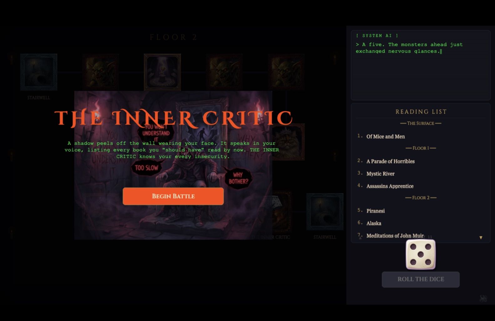 The goal is simple: survive the dungeon and emerge with a reading list you’ll actually want to tackle. The execution is anything but.