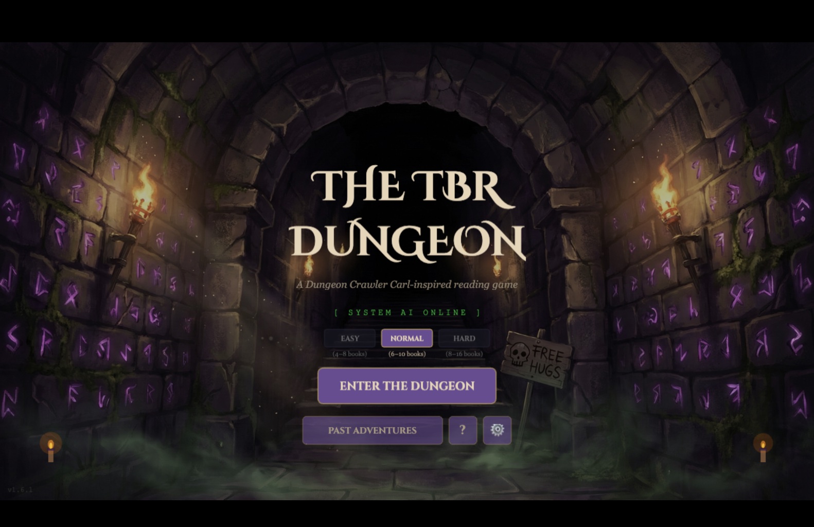 Inspired by the world of Dungeon Crawler Carl, The TBR Dungeon drops you into a three-floor dungeon where every space is a reading encounter. Your player token — yes, the one in the boxer shorts — navigates 42 spaces across increasingly dangerous floors while the System AI delivers snarky commentary on your every decision.